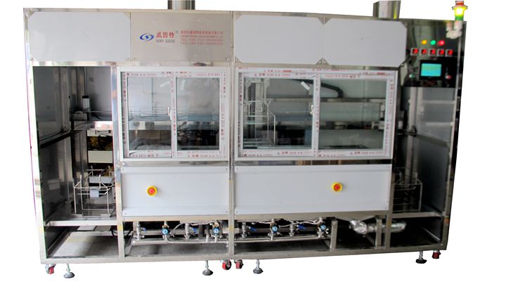 威固特VGT-907FHA半導體配件自動智能式超聲波清洗機VGT-907FHA 為半導體配件自動智能式超聲波清洗機,設備共有 9 個功能槽,配置有循環過濾系統、自動恒溫系統、觸摸屏系統、拋動系統、超聲波清洗系統、預熱箱系統、溢流系統、鼓泡系統、酸洗系統、IPA 脫水系統等。